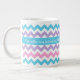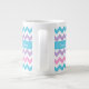 Une tasse enorme élégante de café ou de soupe pour que vous personnalisiez, avec un motif des chevrons de bleu de turquoise, de rose de sucrerie, mauve-clair et blancs. Si vous préférez la tasse sans n'importe quel texte, vous pouvez facilement le customiser en supprimant le texte et en déplaçant le motif de chevron vers le haut jusqu'à ce que la bande simple de turquoise disparaisse.