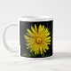 Cette tasse géniale présente une photographie d'une fleur de pissenlit jaune. La photo a été prise en utilisant la macrophotographie, ce qui donne des détails si brillants que vous pouvez voir les pétales individuels et les ombres qui sont projetées dessus.