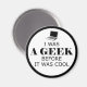 J'étais un geek avant qu'il ne soit cool. Si cette déclaration est quelque chose auquel vous pouvez vous identifier, cet aimant est pour vous! Les couleurs arrière - plans peuvent être changées pour donner à ce design une touche plus personnelle.
