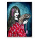 Peinture mixte originale à l'aide d'aquarelles et de crayons de couleur et de peinture acrylique blanche. L'influence asiatique d'une femme tenant un ventilateur. Des couleurs riches et audacieuses font de ce design attrayant un attrait pour tous les articles.