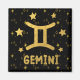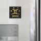 Aimant personnalisé pour "Gemini" avec symbole zodiaque doré, étoiles dorées et arrière - plan noir.