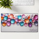 Apportez une touche de magie et d'éclat à votre espace de travail avec ce tapis de bureau personnalisé orné de pierres précieuses arc-en-ciel vibrantes. Les cristaux colorés, posés sur un fond noir élégant, créent une scène fascinante et inspirante. Rendez-le vraiment vôtre en ajoutant votre nom ou une citation motivante. La surface lisse offre une base confortable pour votre souris et votre clavier, améliorant la productivité et ajoutant une touche de glamour à votre bureau.