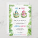 Gender reveal invitation with cartoon dinosaur egg