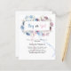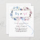 Un élégant arrière - plan blanc, décoré de fleurs rose et bleue d'eau et d'un arc rose et bleu. Personnalisez et ajoutez un nom et des détails du parti. Texte : Garçon ou Fille 1 feuille = 1 invitation imprimé bord à bord.