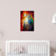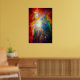 Ce poster vintage chrétien a un design d'espace vintage chrétien coloré et dynamique. Avec de belles couleurs bleu rouge jaune et orange. A l'air de nuages spatiaux abstraits. d'une photo vintage des années 1900.Le verset de la Bible Genèse. 1 Dans le commencement Dieu créé.