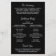 Programme de mariage moderne avec un design minimal avec votre photo préférée sur un arrière - plan noir. Le dos a votre ordre de cérémonie, mariage et message de remerciement dans une combinaison de polices sans serif simples et un script élégant. Ce programme chic conviendra à merveille à un mariage gothique ou à Halloween.