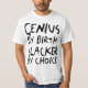 Génie par naissance, Slacker par le tee - shirt léger bien choisi : Pour le futé mais paresseux. La parodie drôle charrient d'humour impressionnant impair excentrique étrange impair étrange ridicule hilare idiot maladroit original ironique de culture pop d'ironie gaspillé par idiot muet stupide fatigué intelligent brillant de cerveaux de cerveau de comédie de plaisanteries de plaisanterie de satire.