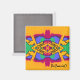 "Laughing Lion" est l'impression PiCassieO originale qui a été la source de cet aimant aux couleurs vives, avec son design géométrique à l'indienne. J'ai pris un petit abstrait de la première version couleur de l'impression, le carrelé et l'ai retourné dans un motif répétitif, et ce design a été le résultat. C'est incroyable que tout ait commencé avec un "avant art" d'artiste Airedale sur la porte - mais c'est vrai ! Allez, Cassie !