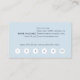 Les cartes de visite de fidélité chic pour votre salon, spa ou services de beauté portent votre nom ou nom de société accentué par deux illustrations d'aquarelle en tranches géantes dans des bleus océaniques éthérés. Ajoutez vos coordonnées complètes à l'arrière dans marine profonde sur le bleu pâle correspondant. Inclut votre offre de fidélité personnalisée (présentée avec "profitez de 20% de rabais sur n'importe quel service après cinq visites"), et six punchouts.