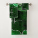 Moderne Elégant Agate Géode Pierre de Marbre Classic Forêt Vert Argent Gris Monogramme Nom du script Ensemble de serviettes de bain