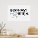 Géologie Ninja - affiche blanche avec lettrage noir et lance marteau de pierre étoile.
