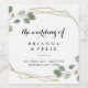 Ces étiquettes de vin mariage de calligraphie géométrique or sont parfaits pour un mariage rustique. Le design présente des branches d'eucalyptus vert et botanique dessinées à la main et des feuilles ornant un cadre élégant. Faites-vous les autocollants de bouteilles de vin vous-même en incluant vos noms, votre lieu et la date de votre événement. Ces étiquettes peuvent compléter la réception de mariage, le dîner de répétition, ou tout simplement modifier le libellé pour convenir à toute célébration.