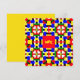 Cartes de notes colorées rouges, jaunes, bleues et vertes. La zone de texte carré rouge peut être supprimée, les initiales peuvent être modifiées, le dos jaune de la carte peut être modifié. Par celeste@khoncepts.com #géométrique