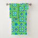 Serviette sertie dans une étoile abstraite géométrique motif Dans les tons vert citron, bleu cérulean et turquoise, accentué de bleu profond