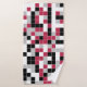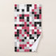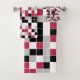 Cet ensemble coloré de serviettes de bain dispose d'une motif géométrique multicolore en magenta tendance, noir, gris et blanc avec une grille blanche. Les carrés sont colorés dans un motif aléatoire et vous pouvez modifier les couleurs dans l'outil Design pour correspondre à votre schéma de couleurs de salle de bain.