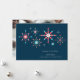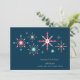 Cette carte de vacances moderne présente une collection de flocons de neige audacieux et géométriques contre un arrière - plan bleu marine profond. Chaque flocon de neige est méticuleusement façonné dans des couleurs vives de rouge, bleu et or, offrant un contraste visuel saisissant. Le message minimaliste "Happy Holidays" complète subtilement le design, ce qui le rend parfait pour envoyer des réjouissances festives pendant la saison des fêtes. Cette carte est idéale pour ceux qui apprécient une esthétique propre et contemporaine tout en maintenant la chaleur et la tradition des fêtes de vacances.