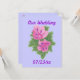 Crayon coloré de géraniums rose et violet avec feuilles verts, avec des espaces réservés pour l'information mariage, est imprimé sur des invitations recto verso. Les détails sont faciles à customiser sur les formulaires modèles. La couleur arrière - plan de la lavande peut également être customisée. Merci pour faire du shopping à CherylsArt sur Zazzle.