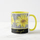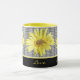 La marguerite jaune de gerbera est humide d'une douche d'après-midi, avec les nuances jaunes molles contrastant bien sur le fond noir de pied-de-poule. Le texte "de rire vivant d'amour" est personnalisable.