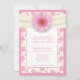 Vous pouvez personnaliser le texte et la couleur arrière - plan sur cette marguerite gerbérique rose clair, damas floral ivoire et faire-part de mariage ruban. Avec les modifications du texte, cela ferait une très belle invitation pour toute autre occasion spéciale aussi. Vous pouvez également modifier le type de papier. Il y a une variété de types de papier à choisir et ce design serait très bon avec beaucoup d'entre eux. Pour modifier le texte, utilisez l'option personnaliser. Pour les modifications plus importantes, telles que les modifications de police, de couleur de police, de taille de police, de disposition de texte ou de couleur arrière - plan, utilisez l'option personnaliser. Les couleurs de cette invitation sont l'ivoire, le rose pâle et le blanc. REMARQUE : Il s'agit d'un design imprimé plat sans embellissement en relief ou en 3D.