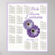 Carte de sièges pourpre Gerbera Daisy pour mariages ou tout événement de qualité. Quinze tables de huit personnes ou customiser la liste d'invités pour vos besoins.