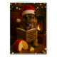 Humorous Christmas card featuring a German Shepherd reading 'The Cheese Tax at Home Regulations 2025' whilst trying to resist the urge to eat the cheese that someone's left on the table right in front of its nose!