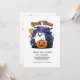 Avec des citrouilles avec des casquettes sorciers et des chauves-souris ludiques, cette invitation apporte une touche mignonne et festive à votre fête d'Halloween. (OEuvre générée par l'IA)