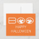 Carte postale chic et charmant Ghosts Boo Halloween avec un design de texte amusant avec deux fantômes espiègles hantant les lettres "O" du mot boo. Cette simple typographie Halloween carte postale est un choix idéal pour souhaiter à quelqu'un un Happy Halloween. Customisez avec le texte personnalisé de votre choix. Cliquez sur le bouton "Customiser" pour trouver d'autres options de personnalisation.