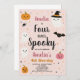 Fêtez votre enfant quatre ans avec une invitation d'anniversaire d'Halloween ghoul-tastic! Doté de fantômes, de citrouilles et d'accents éffrayants-amusants, ce design est parfait pour une fête d'octobre, un costume de bash ou une célébration de tour ou de plaisir. Personnalisez facilement avec le nom de votre enfant, son âge et les détails de la fête sur Zazzle. Un invitation ludique et festif qui rend chaque "boo day" magique et inoubliable !