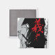 Profil latéral d'un sinistre samouraï. Lettres Kanji traditionnelles de "Gi". Gi Dark Samurai