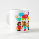 Jumbo Certains jours, une tasse de joe de taille régulière ne le fera pas. Quand vous avez besoin d'une dose de caféine en plus, utilisez votre tasse XL de Zazzle. Peut contenir jusqu'à 591 ml. Idéal pour des soupes, céréales, glaces et du chili aussi ! Cette tasse géante à une anse en forme de C pour une utilisation confortable. Dimensions : Hauteur : 4,5" Diamètre : 3,9" Capacité : 20 onces Micro-ondes et lave-vaisselle sans danger Construction céramique forte Satisfait ou dépasse les exigences de la FDA en matière de salubrité des aliments et des boissons Conseil du concepteur : Pour assurer l’impression de haute qualité, veuillez noter que l’aire de conception personnalisable de ce produit mesure 4" de haut x 10,5" de large