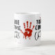 Jumbo Certains jours, une tasse de joe de taille régulière ne le fera pas. Quand vous avez besoin d'une dose de caféine en plus, utilisez votre tasse XL de Zazzle. Peut contenir jusqu'à 591 ml. Idéal pour des soupes, céréales, glaces et du chili aussi ! Cette tasse géante à une anse en forme de C pour une utilisation confortable. Dimensions : Hauteur : 4,5" Diamètre : 3,9" Capacité : 20 onces Micro-ondes et lave-vaisselle sans danger Construction céramique forte Satisfait ou dépasse les exigences de la FDA en matière de salubrité des aliments et des boissons Conseil du concepteur : Pour assurer l’impression de haute qualité, veuillez noter que l’aire de conception personnalisable de ce produit mesure 4" de haut x 10,5" de large