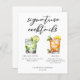Cette carte de cocktails chic et rafraîchissante propose une simple typographie noire au-dessus de 2 boissons et leurs ingrédients pour votre bar mariage. Un dessin mignon Gin et Tonic et Mai Tai ajoute une touche cool à votre menu bar. Complétez avec les noms du couple et la date de leur réception.