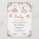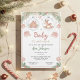 Charming winter baby shower invitation featuring watercolor gingerbread house and rocking horse reindeer ornaments. Decorated with pine branches, pink berries, gingerbread cookies, and tiny baby mittens. The "Baby it's cold outside" message sets a cozy, festive tone for December celebrations. Soft pink and green watercolors create a delicate, whimsical aesthetic perfect for holiday baby showers. This sweet design captures the magic of welcoming a new baby during the most wonderful time of year.