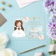 Printed on premium acrylic, this invitation creates a sophisticated and memorable keepsake for family and friends. The soft feminine design makes it ideal for First Holy Communion celebrations, church gatherings, and religious milestone events.