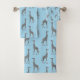 Sur cet ensemble chic de serviettes se trouvent des girafes brillantes d'argent sur un fond bleu onirique pour le contraste. Vibes design branchées.