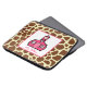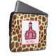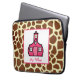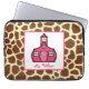 Un sac de l'électronique pour des professeurs comportant un arrière - plan d'impression de girafe. Personnalisez avec votre nom sous l'école rose.