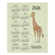 Giraffe Design 2026 Calendar Poster in various sizes, with customizable background color. and text.