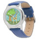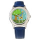 Des girafes colorées sur la montre pour enfants avec bracelet en cuir disponibles en différentes couleurs pour les garçons ou les filles.