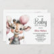 Celebrate the imminent arrival of your bundle of joy by inviting your friends and loved ones to your baby shower with this whimsical girl giraffe baby shower invitation. The customizable text allows you to effortlessly add your name, date and time of the celebration, and the RSVP information. A variety of paper types and corner styles are available for your unique invitations, along with the option to download if you prefer a digital format.