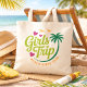 Designed with a vibrant tropical aesthetic, this tote features playful typography, palm tree details, and fun beach-inspired elements that perfectly capture the energy of a summer getaway. Whether you're heading to the beach, pool, or a weekend vacation with your best friends, this bag is both practical and eye-catching.