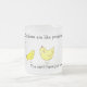 Quatre poussins jaunes sur la tasse qui indique, des "poulets sont comme des pommes chips… que vous ne pouvez pas avoir juste un !"