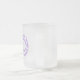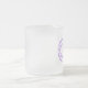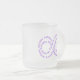 Tasse en verre givré avec le symbole pourpre d'infini des textes.