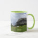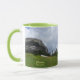 La forme massive d'une montagne s'élève au-dessus d'une prairie alpine dans le parc national des Glaciers. Des morceaux de neige persistent en été. Des nuages s'accumulent dans le ciel au-dessus. Le pré est plein de petites fleurs jaunes appelées lys de glacier. Ces beaux fleurs sauvages sont une source de nourriture importante pour la faune de montagne. Apportez cette belle scène des Montana Rockies à votre maison, et profitez-en avec votre boisson chaude préférée. Cette tasse pittoresque a une version inversée de la même photo de paysage de l'autre côté. Les photos sont jointes pour créer une image enveloppante. De chaque côté, le texte "Parc national des Glaciers" apparaît dans une teinte jaune qui ressemble à la couleur des lys glaciaires.