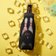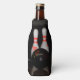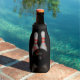 Un glacière de bouteille avec une photo de deux épingles de bowling avec un ballon sur le point de les abattre.