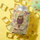 Illustration de la chouette assise sur la branche de l'arbre. Texte personnalisé des deux côtés.