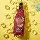 Un verre de daiquiri aux fraises avec garniture. Arrière - plan rouge sans couture. Texte personnalisé.