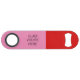 Make every guest feel special with this stylish and functional bar key. Featuring a trendy red and pink color block aesthetic. Whether you are hosting a Valentine's Day Party, bachelorette party, or looking for the perfect housewarming gift, this "GLAD YOU'RE HERE" bottle opener will make your occasion just right.