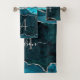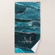 Moderne Elegant Agate Geode Gemstone Marbre Classic Vert Argent Gris Monogramme Nom du script Ensemble de serviettes de bain