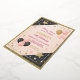 Célébrez un jalon dans le style avec cette invitation glamour Sweet 16 anniversaire! Avec une palette de couleurs rose et or aux accents de parties scintillant scintillants, ballons festifs et étoiles chatoyantes sur un arrière - plan noir, ce design respire l'élégance et le plaisir. Parfait pour une fête éblouissante Sweet 16, il est entièrement personnalisable pour inclure votre nom, date, lieu et détails RSVP. Donnez le ton pour une nuit à retenir avec cet invitation stupéfiant !