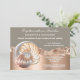 Set the tone for a truly unforgettable celebration with this glamorous coastal wedding invitation. Featuring a luminous shimmer conch shell, the design rests against a faux sparking dusky pink and taupe background that blends soft romance with modern sophistication.